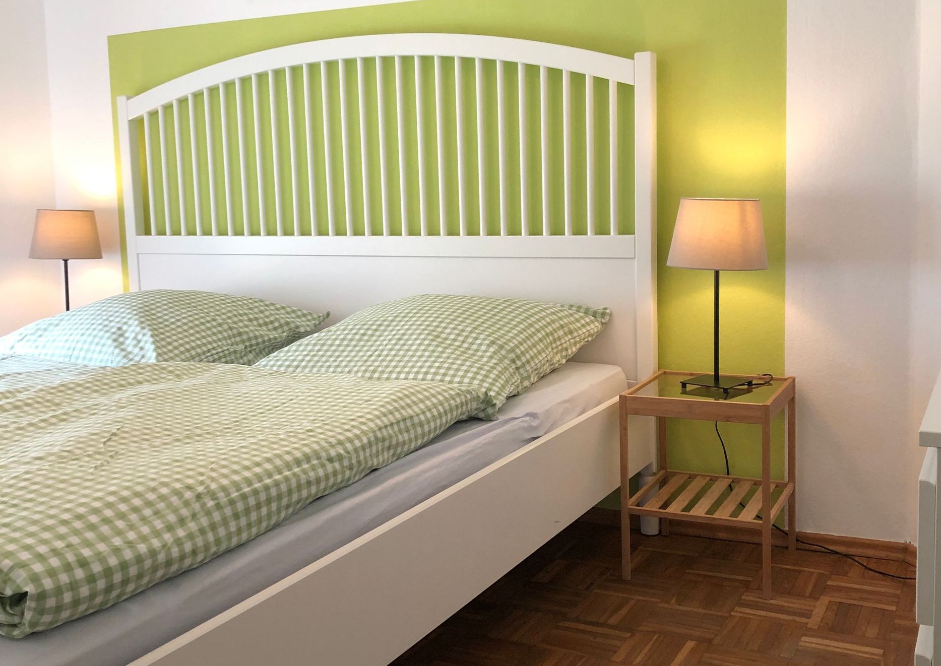 Im kleinen Schlafzimmer steht ein gemütliches Doppelbett (180 x 200). Das Bett ist nur von einer Seite zugänglich (bitte Bilder beachten).